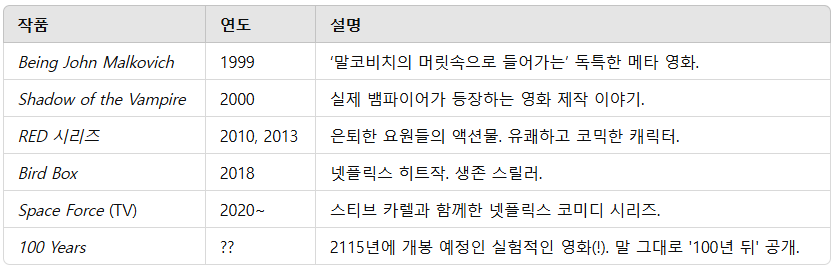 존 말코비치 특유의 불안하면서도 기괴한 존재감이 관객을 사로잡습니다.